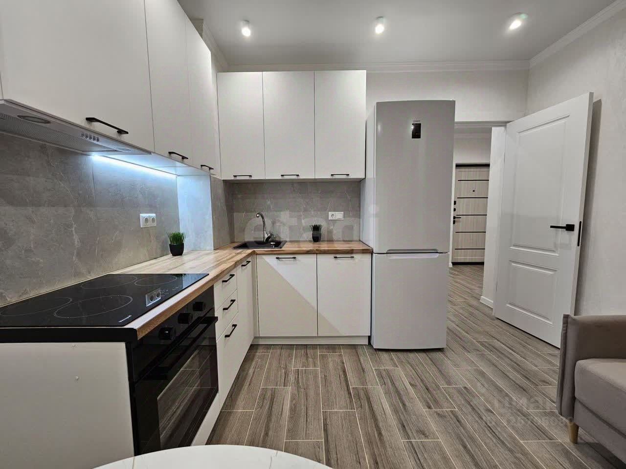Объект расположен на 7 этаже 24-этажного здания, окна выходят на солнечную сторону во двор. Площадь квартиры составляет 40 м² и включает просторную кухню-гостиную 12 м², изолированную жилую комнату 16 м² и утепленную застекленную лоджию 4 м², что эффективно увеличивает полезное пространство. В квартире выполнен качественный дизайнерский ремонт с использованием дорогих материалов, установлена система теплого пола, высота потолков — 2.8 метра. Вся современная мебель и техника остаются новому владельцу: полноценная встроенная кухня, два шкафа-купе, холодильник, стиральная и встроенная техника.