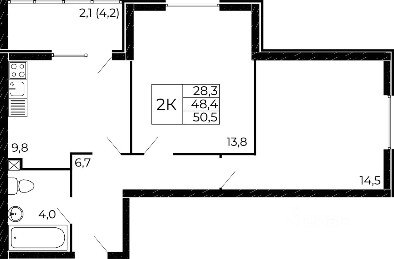 Общая площадь50,6 м2