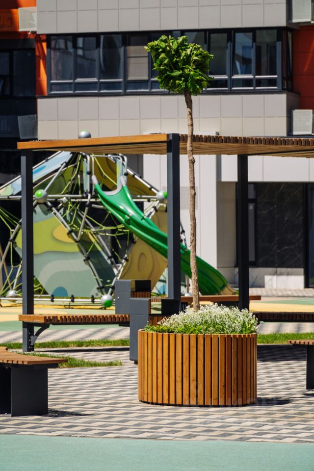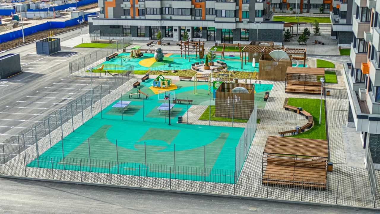 • детский сад и школу на территории,