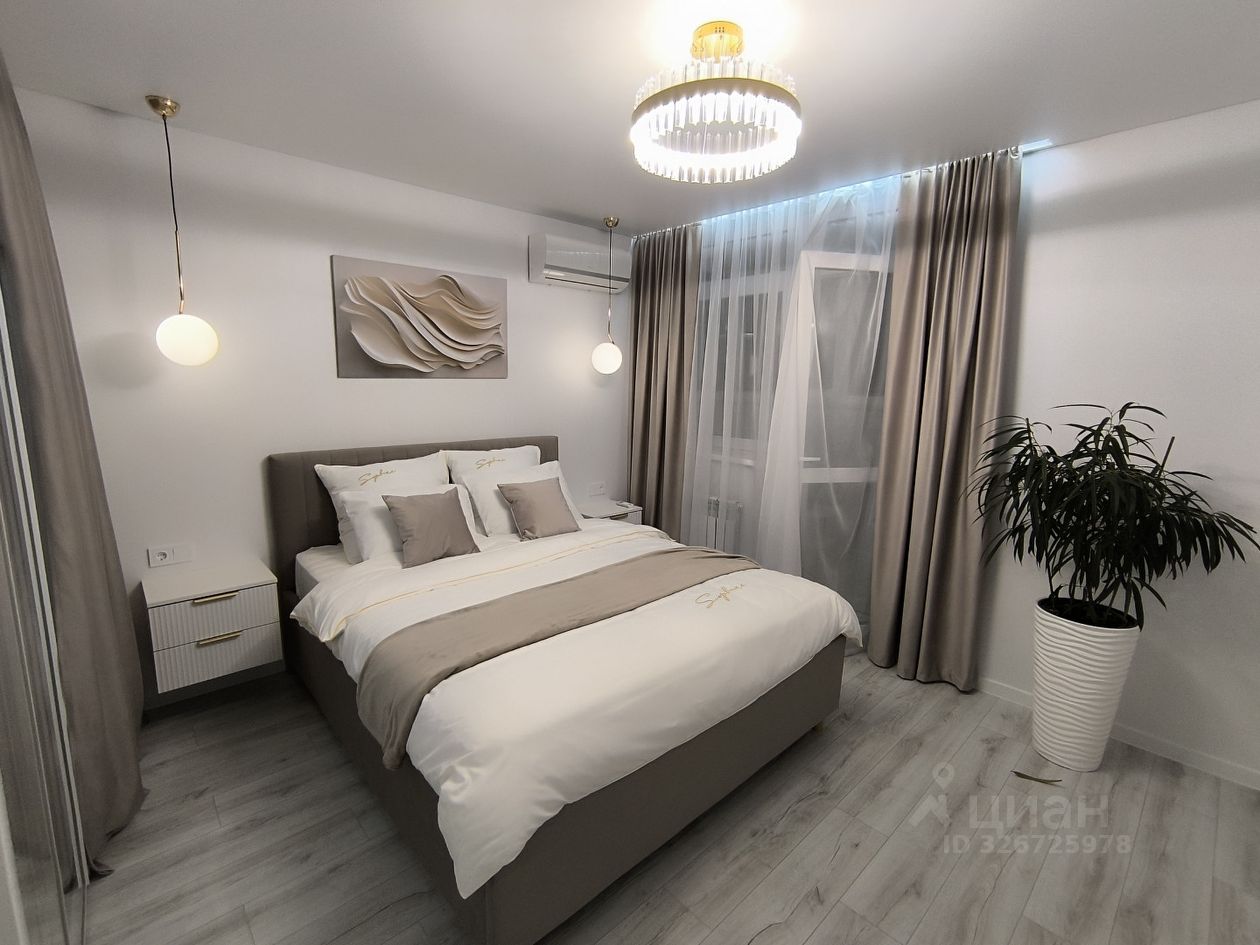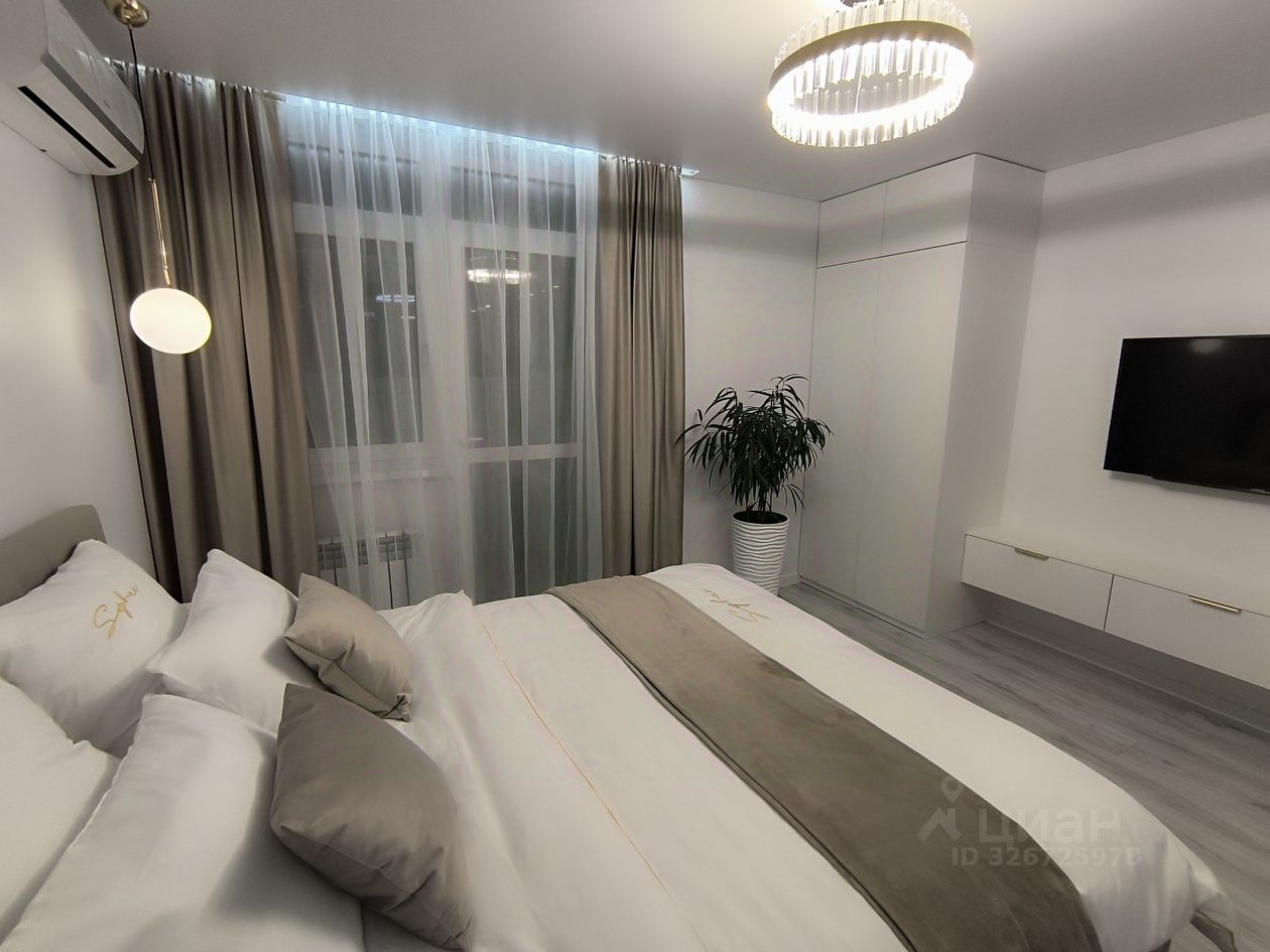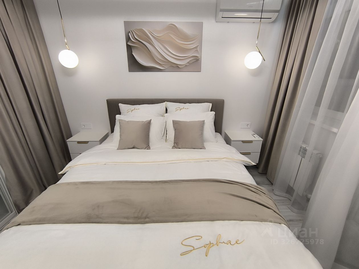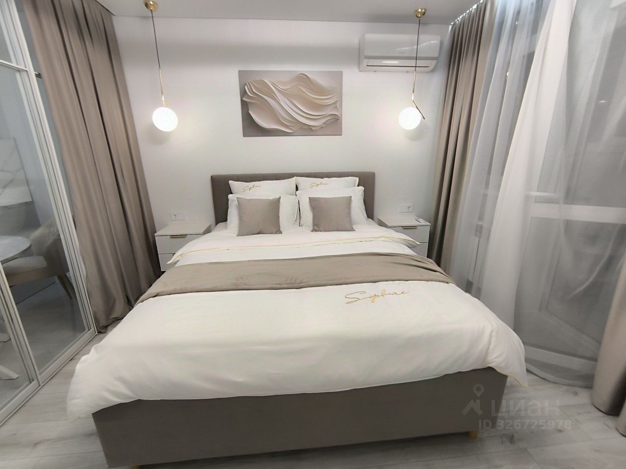 О квартире: . Ремонт и комплектация выполнены по дизайн-проекту. Планировка: Умное зонирование с помощью раздвижной перегородки разделяет пространство на две зоны: Спальная зона: Вместительная кровать с подъемным механизмом, зона ТV и шкаф для одежды. Гостиная-кухня: Просторная светлая зона с комплектом современной встроенной техники, кухонным гарнитуром и большим раскладным столом для всей семьи. Дополнительное спальное место — раскладной диван. Дополнительные преимущества: Отдельная гардеробная и утеплённая просторная лоджия — идеальное место для утреннего кофе или спокойного вечера.
