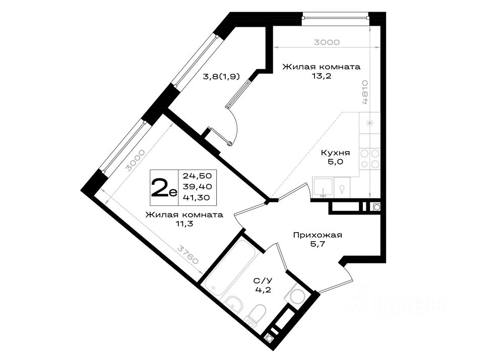 Общая площадь41,3 м2