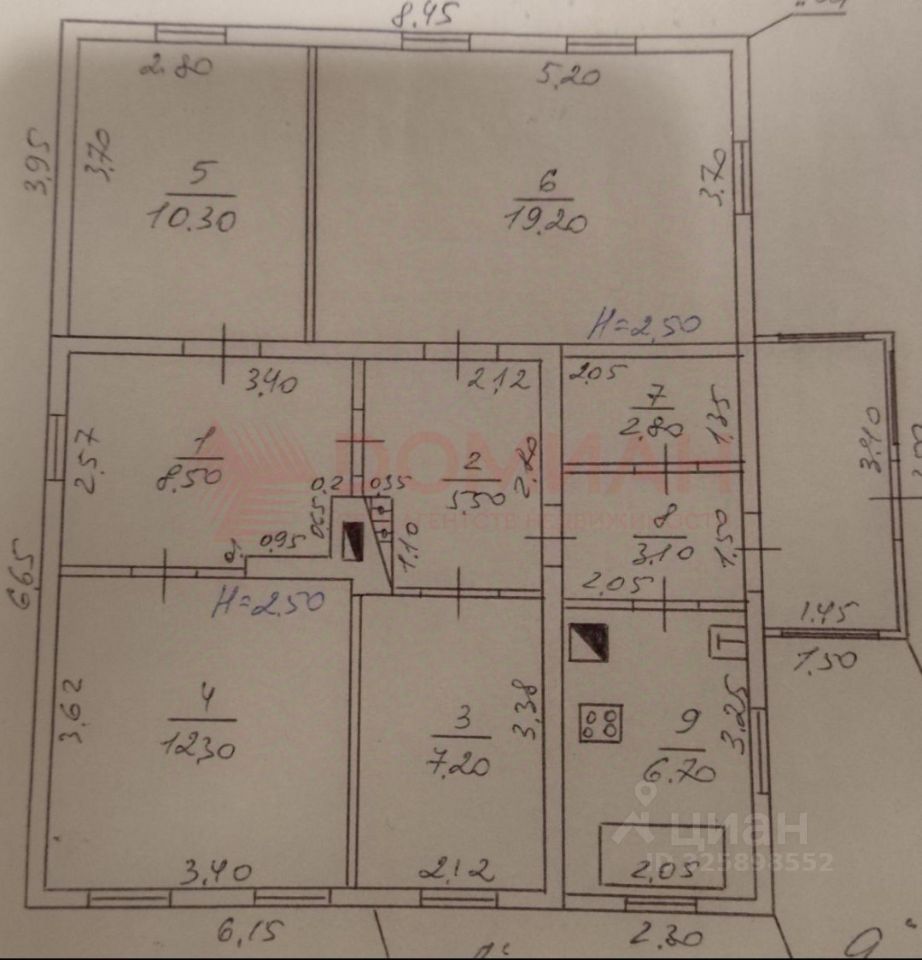 В доме есть газ, свет, вода. Состояние жилое. 6 комнат, потолки 2,5, новый газовый котел, сухой подвал.