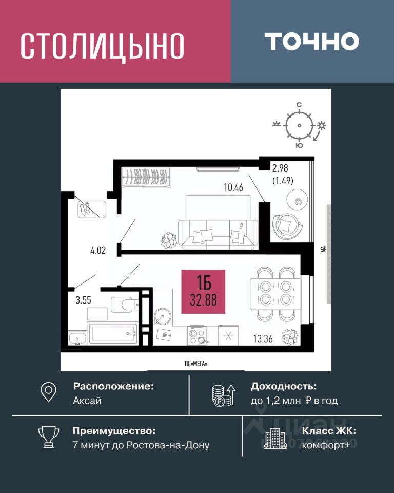 продам 1-к, Аксай4 932 000 ₽