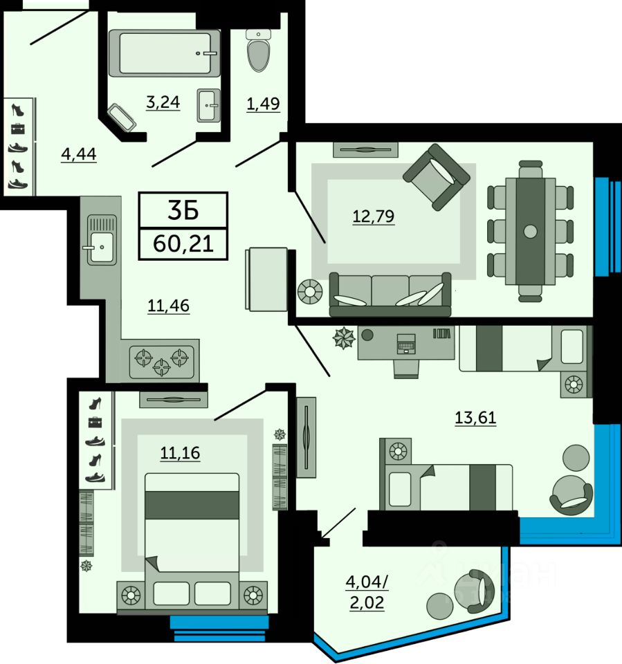 Общая площадь60,3 м2