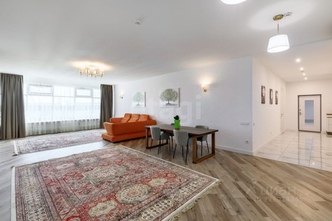 Четырехкомнатная квартира площадью 190 м² в ЖК ''Адмирал'' предлагает просторное и продуманное жилое пространство бизнес-класса. В квартире четыре спальни ( три спальни по 20 м² каждая ) две гардеробные и два санузла обеспечивают комфорт для большой семьи или гостевого размещения. Дизайнерский ремонт выполнен по проекту европейского архитектурного бюро с использованием премиальных материалов: немецкая кухня Nolta с техникой Bosch, австрийский пол, сантехника Villeroy & Boch, итальянский керамогранит и плитка, немецкая декоративная штукатурка. Высота дверей 2,4 м подчеркивает ощущение простора, а итальянские шторы добавляют интерьеру завершенности. Панорамные окна открывают вид на реку Дон, создавая атмосферу уюта и связи с природой.