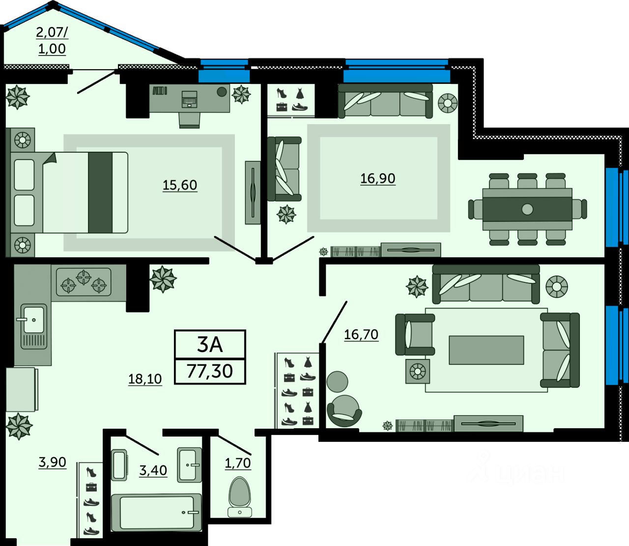 Общая площадь76,9 м2