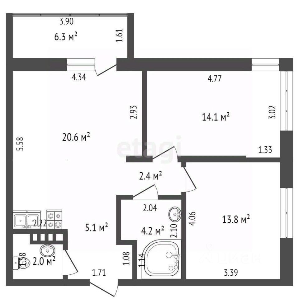 В продаже шикарная 3-комнатная квартира площадью 69 м2!