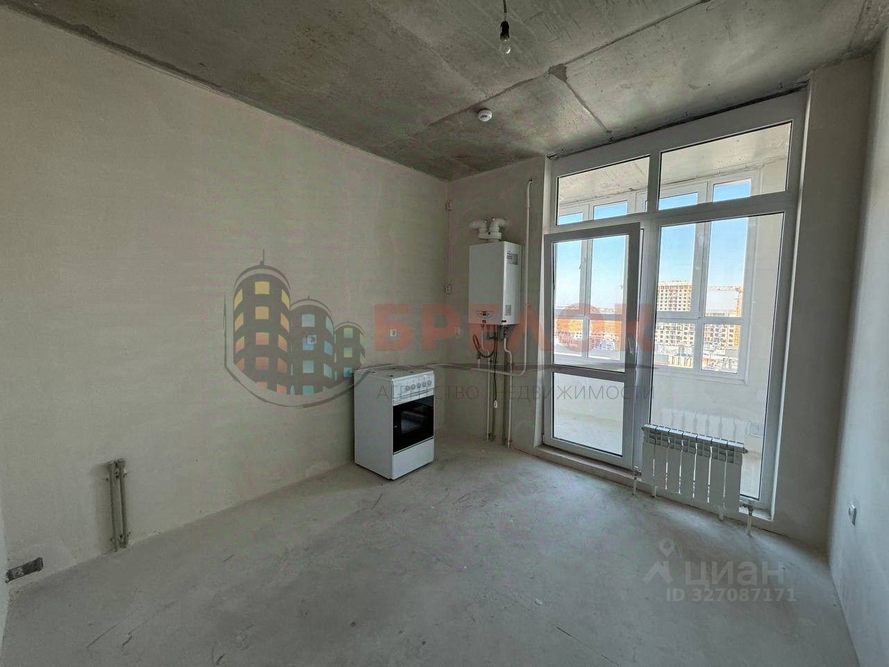 В квартире выполнена чистовая отделка, оштукатурены стены, разведена электрика, стяжка Пола, заниженное французское окно, панорамный балкон.
