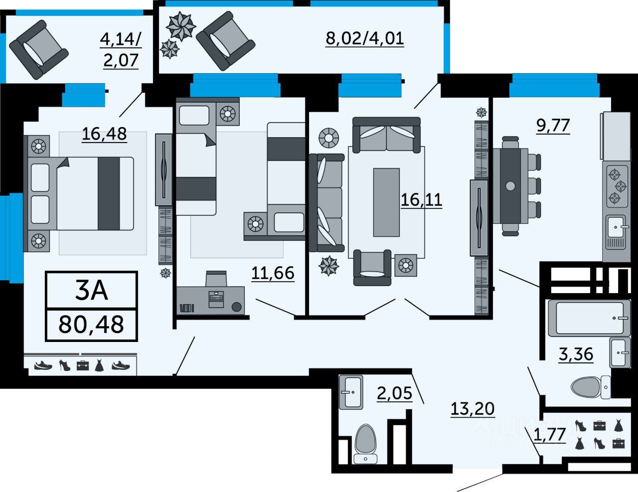 В продаже трехкомнатная квартира в новостройке, в стройварианте. Лучшее решение для жизни, под сдачу или для инвестиций. Планировка квартиры организована с учетом максимальной функциональности, чтобы обеспечить уют будущих жильцов. Основные преимущества, которые создадут комфортное пространство: раздельный санузел, гардеробная и большой балкон, который объединяет две комнаты. Наиболее выгодная цена на этапе строительства. Успейте забронировать квартиру напрямую от застройщика.