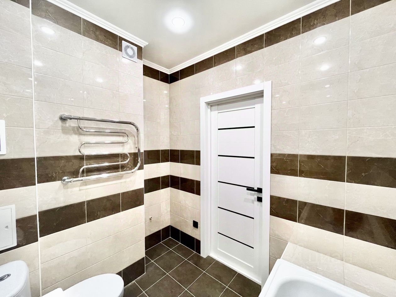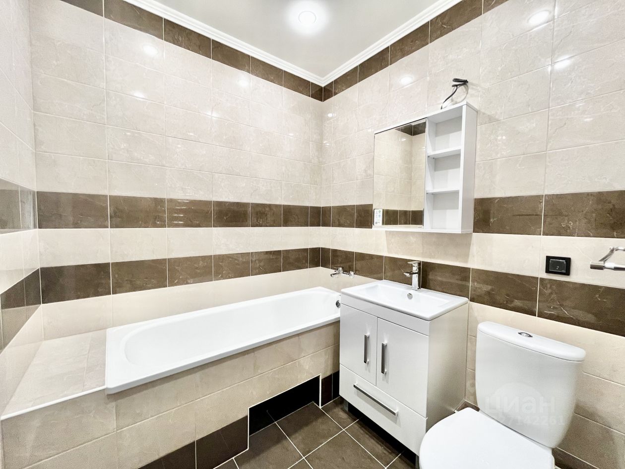 Ванная комната просторная, есть пространство для стиральной машины и сушилки.