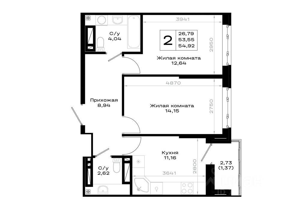 Общая площадь54,92 м2