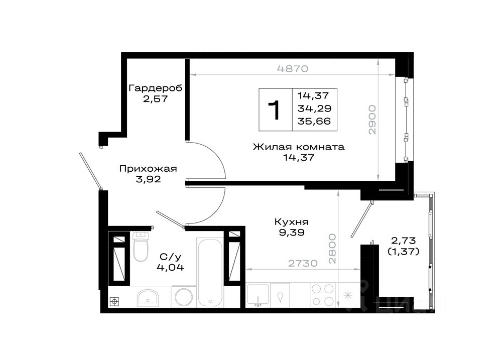 Общая площадь35,66 м2