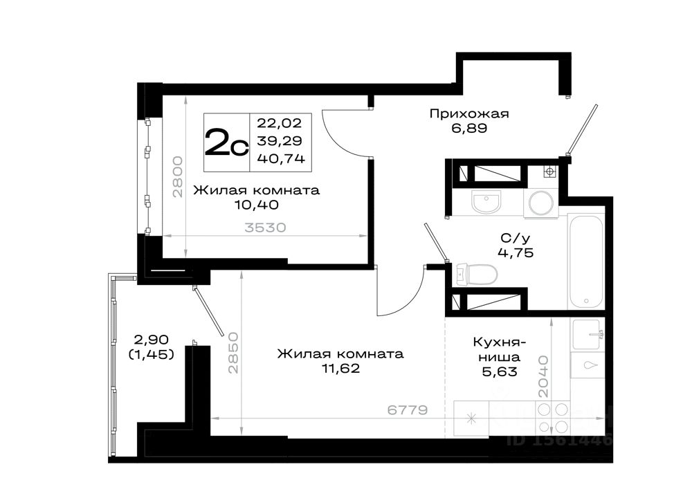 Общая площадь40,74 м2