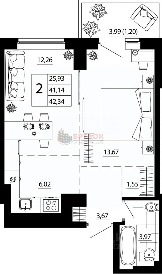 Площадь: 45 м2