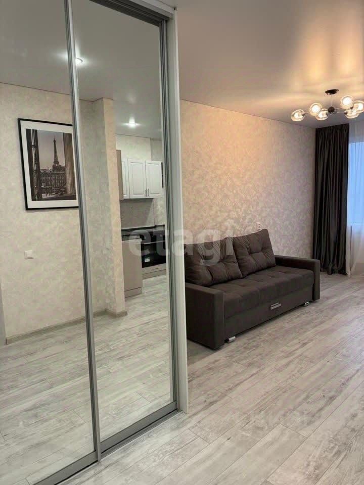 Предлагается к продаже студия площадью 35.3 м² на 15 этаже 24-этажного новостройки ЖК ''Линии Нахичевань''. Объект находится в отличном состоянии, ранее не использовался для проживания. Выполнен качественный ремонт с использованием современных материалов. Вся мебель и техника, включая кровать, диван, телевизор, холодильник и кухонный гарнитур, остаются новому владельцу, что позволяет заехать сразу после сделки. Планировка функциональна, ванная комната оснащена инсталляцией и стильной плиткой, что оптимизирует пространство. Из окон открывается панорамный вид на город.