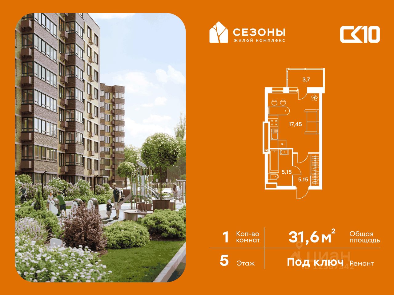 Продаётся студия в строящемся доме (Дом 3), срок сдачи: IV-кв. 2026, общей площадью 31.55 кв.м., на 5 этаже. ЖК Сезоны 1 это уникальный проект, созданный вдалеке от шума и суеты мегаполиса. Радоваться каждому дню в любом возрасте здесь будет проще - внутреннее состояние удовольствия поддерживает окружающая обстановка.