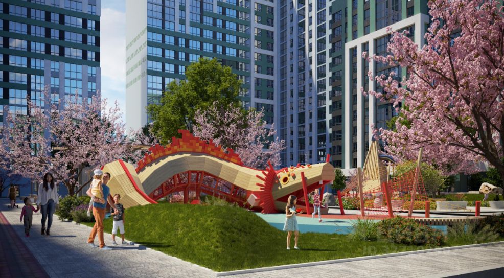 •Входные группы запроектированы по уровню земли. •Внутренний интерьер выполнен в дизайнерской отделке, здесь находятся мягкие лаунж-зоны для комфортного ожидания. •Предусмотрены колясочные и велосипедные помещения. •На территории будут школа и два детских сада, что обеспечит удобство для семей с детьми. •В комплексе находится 8,4 га парка с зонами для прогулок, спорта и отдыха. •Для автомобилистов предусмотрено 5000 машиномест в подземных и наземных паркингах, что позволяет избежать проблем с парковкой и создает безопасные дворы. •Всё необходимое для жизни - от образования до магазинов - находится в шаговой доступности.