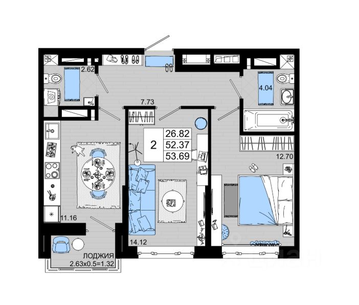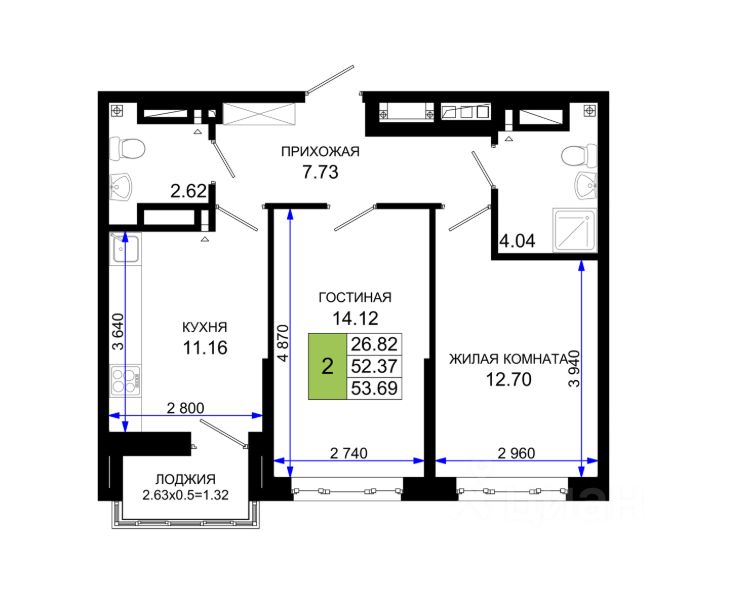 продам 2-к, Элеваторный переулок, 6/36 979 700 ₽